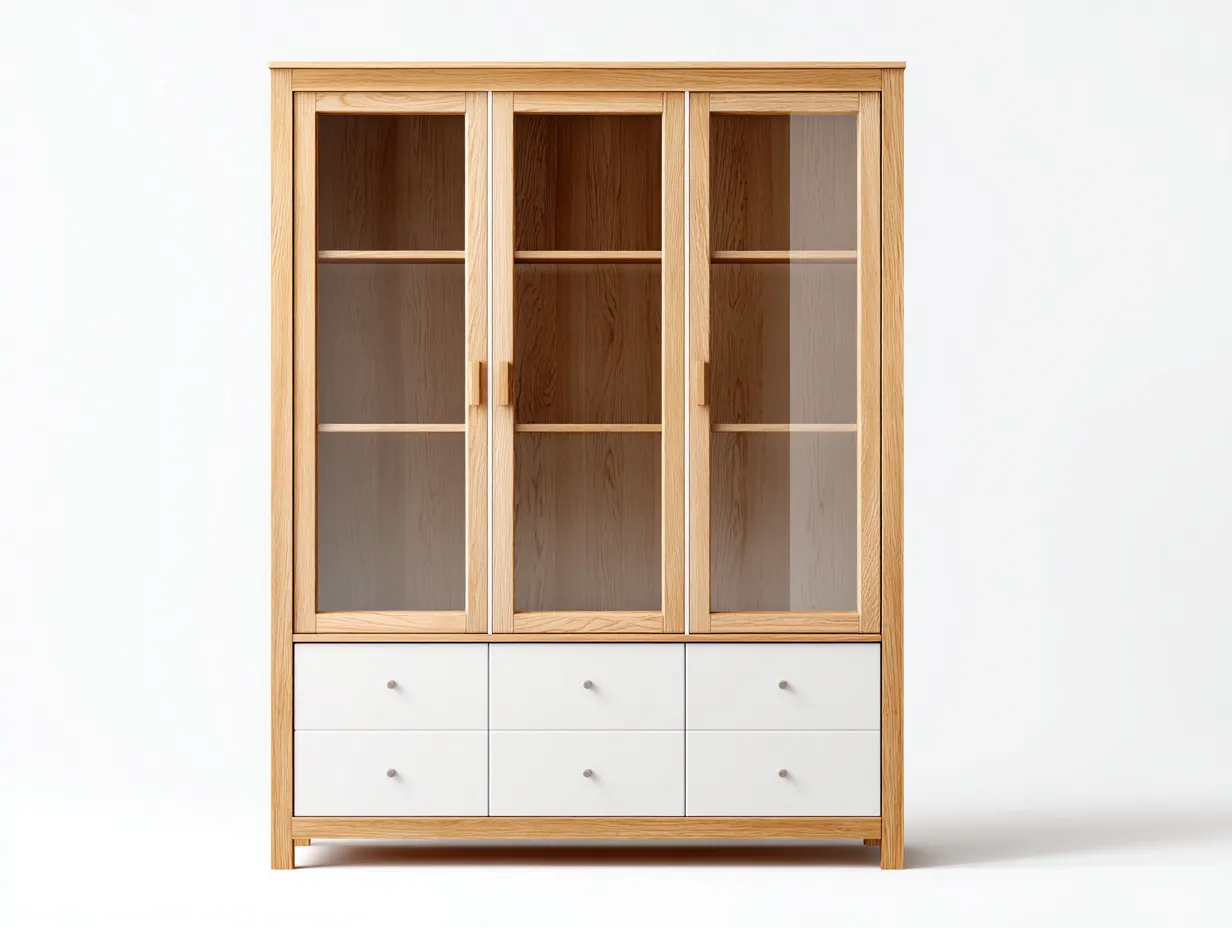 Estantería vitrina madera con cajones 120x40x190 cm blanco y original - diseño moderno salón entrada